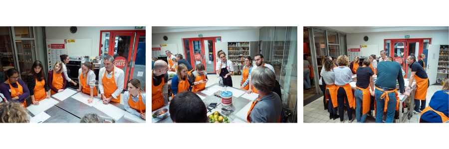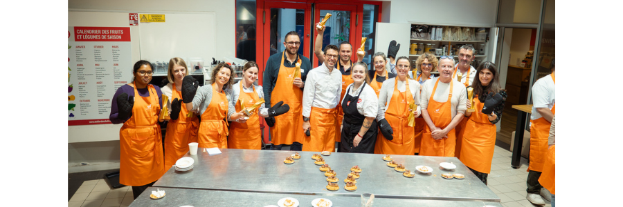 Après le déjeuner, les académiciens ont pris la direction de l’Atelier des Chefs. Tabliers orange marqués au logo Walter France enfilés, ils se sont répartis en brigades pour relever un défi culinaire aussi ludique que stimulant : réaliser 2 × 30 pièces sucrées à partir d’un panier surprise d’ingrédients. Sous le brief dynamique et inspirant du chef Grégory Cuilleron, les talents se sont révélés aux fourneaux !