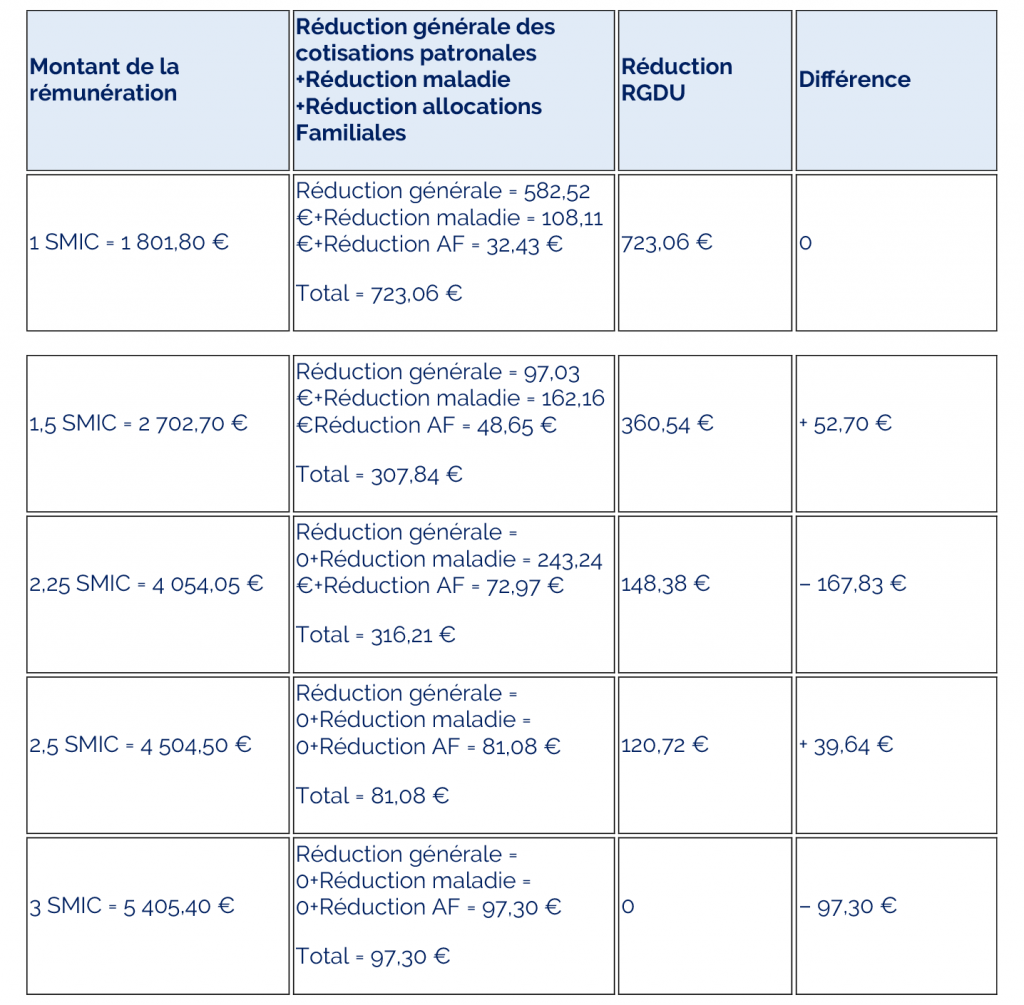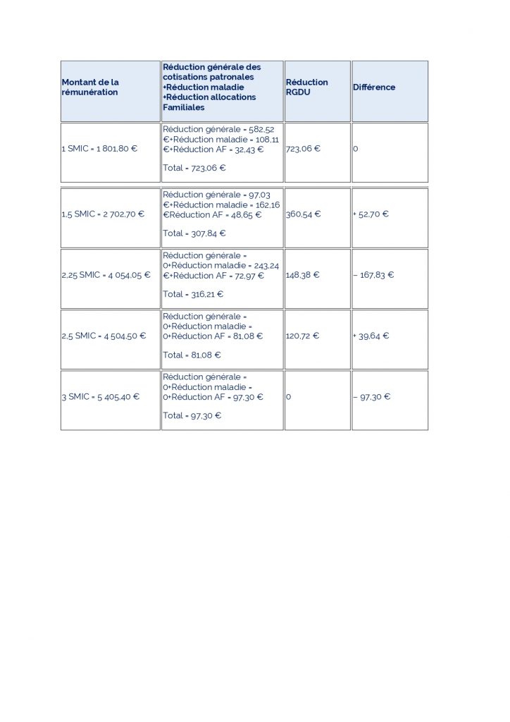 Dans les branches où la convention collective nationale prévoit un salaire minimum national professionnel des salariés sans qualification inférieur au Smic, le coefficient de la RGDU sera calculé sur ce salaire minimum, et pas sur le Smic, ce qui entraînera un montant moindre de réduction pour l’entreprise.