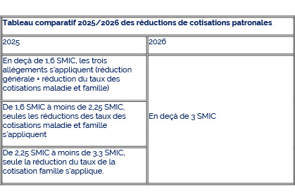 Réforme de la réduction générale de cotisations patronales pour 2026